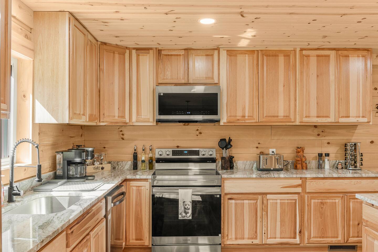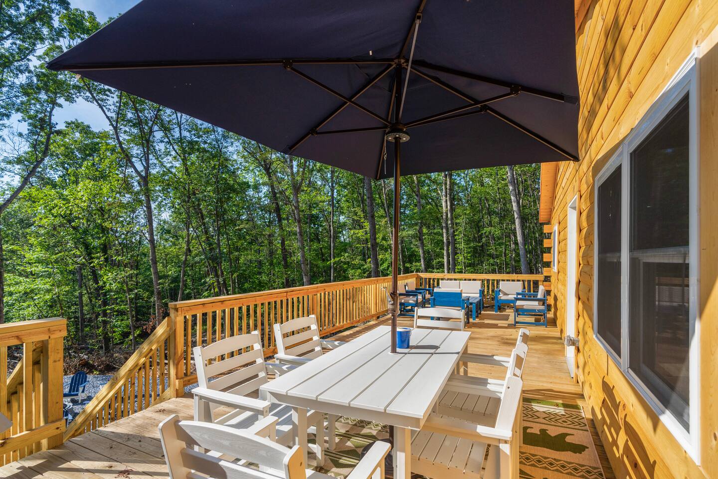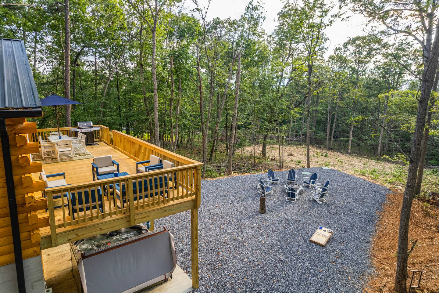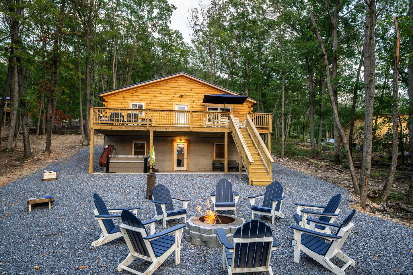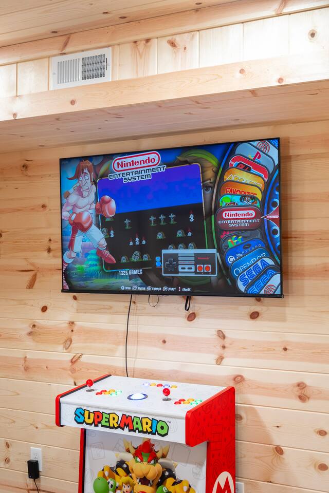 Shenandoah River Access: River access available with a pass (provided) before entering the Shenandoah Gap (SGPOA) subdivision. Bathroom Essentials: Shampoo, conditioner, body wash, hair dryer, cotton balls, cotton swabs, toothbrush, feminine products, and spare razors. Linens: Towels, washcloths, sheets, pillowcases, hot tub towels, and bathmats. Hot Tub: 8-person spa with 63 therapeutic stainless steel jets, captain's chair, tactile jetted massage dome, dual adjustable collar jets, lighted cup holders, pop-up fountains, and soft pillows. Outdoor Cooking: Weber gas grill. Entertainment: 65-inch and 55-inch smart TVs, wireless outdoor speakers (Bluetooth/Airplay compatible). Laundry: Washer/dryer access. Firepit: 30-inch smokeless firepit with wood provided. Outdoor Furniture: multiple seating areas that include lounge chairs and outdoor dining table. Kitchen: Coffee Makers: Keurig K-Duo Hot & Iced Single Serve & Carafe Coffee Maker, BLACK+DECKER One Touch Coffee Grinder. Cooking Appliances: Chefman XL Electric Griddle, BELLA Classic Rotating Belgian Waffle Maker, Instant Pot Duo 7-in-1 Electric Pressure Cooker, Chefman Electric Kettle, Ninja BL610 Professional Blender, CHEFMAN Multifunctional Digital Air Fryer+ Rotisserie, GE Stainless Steel 4-Slice Toaster. Cookware: Deep glass baking dish set, Crock-Pot 7 Quart Slow Cooker, T-fal Ultimate Hard Anodized Nonstick Cookware Set (17 pieces), mixing bowls, and more.BBQ Tools: ROMANTICIST 30-piece BBQ Grill Tool Set.