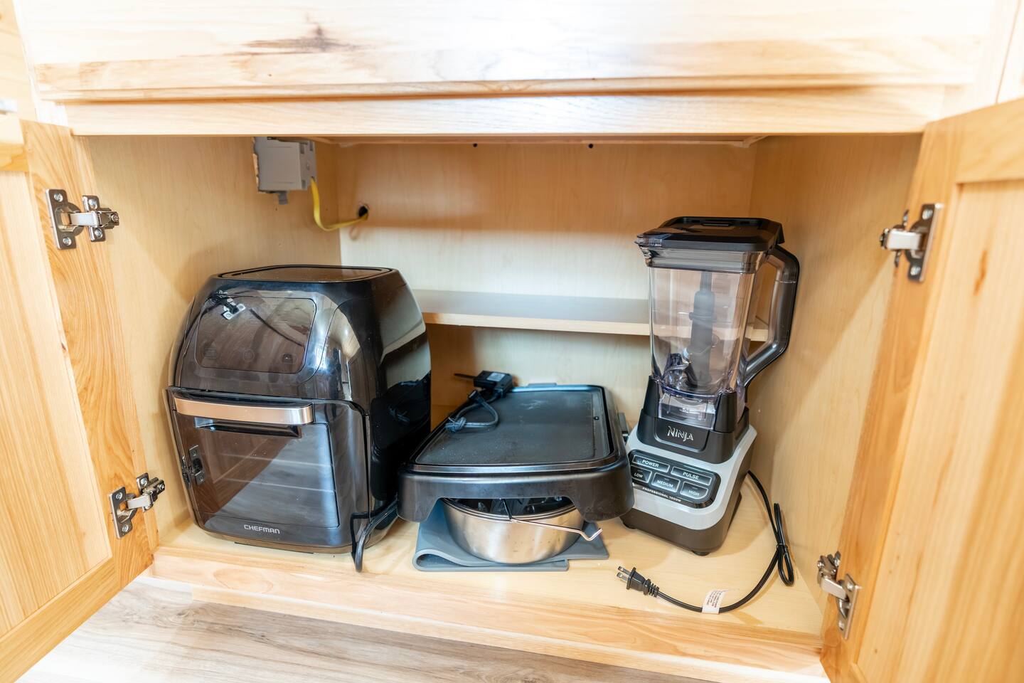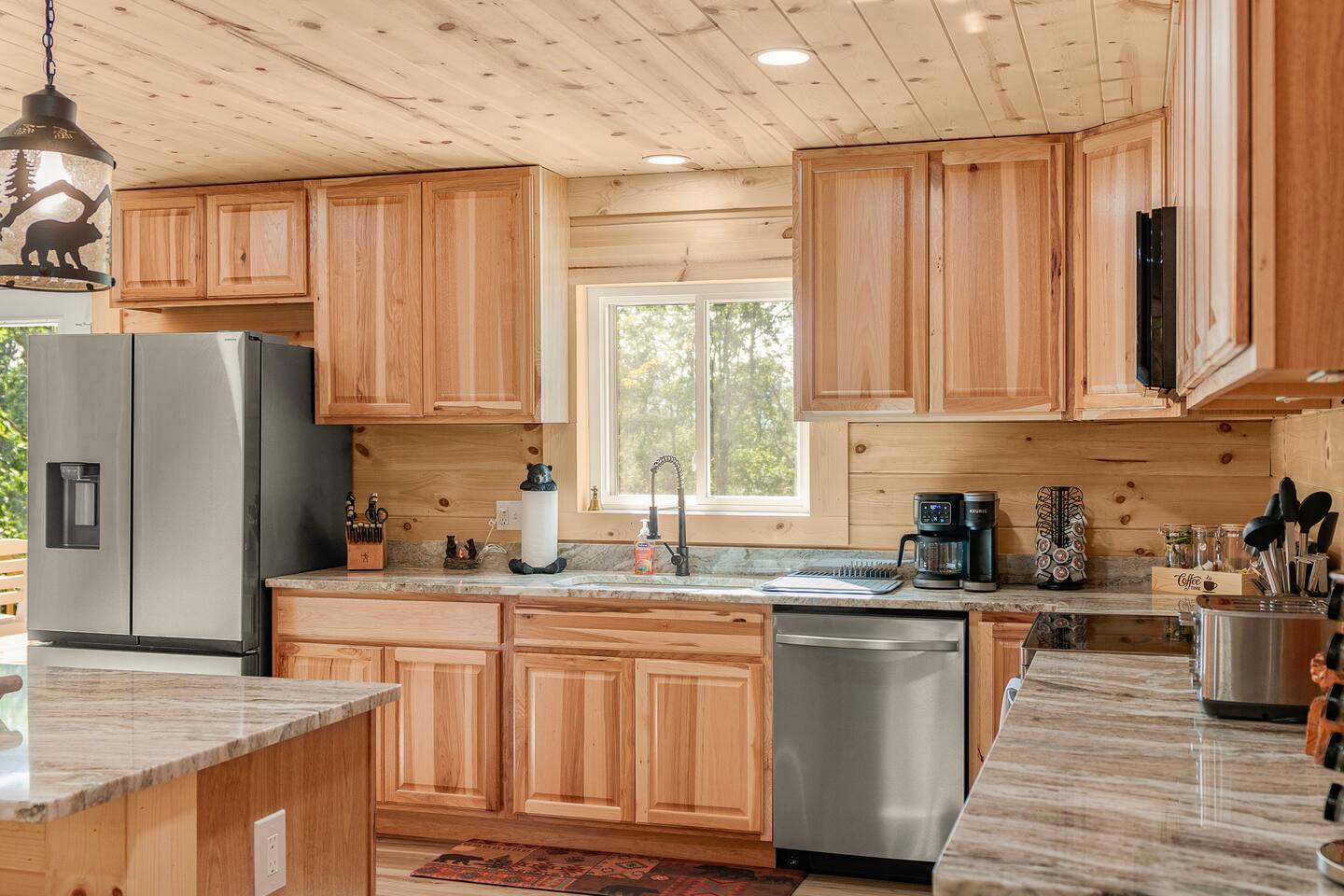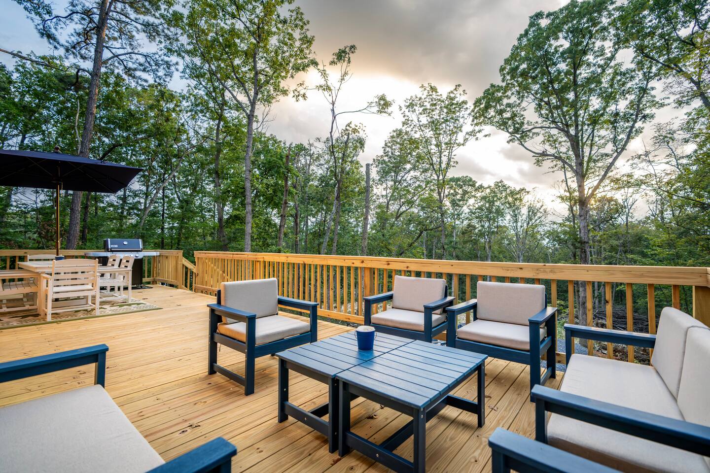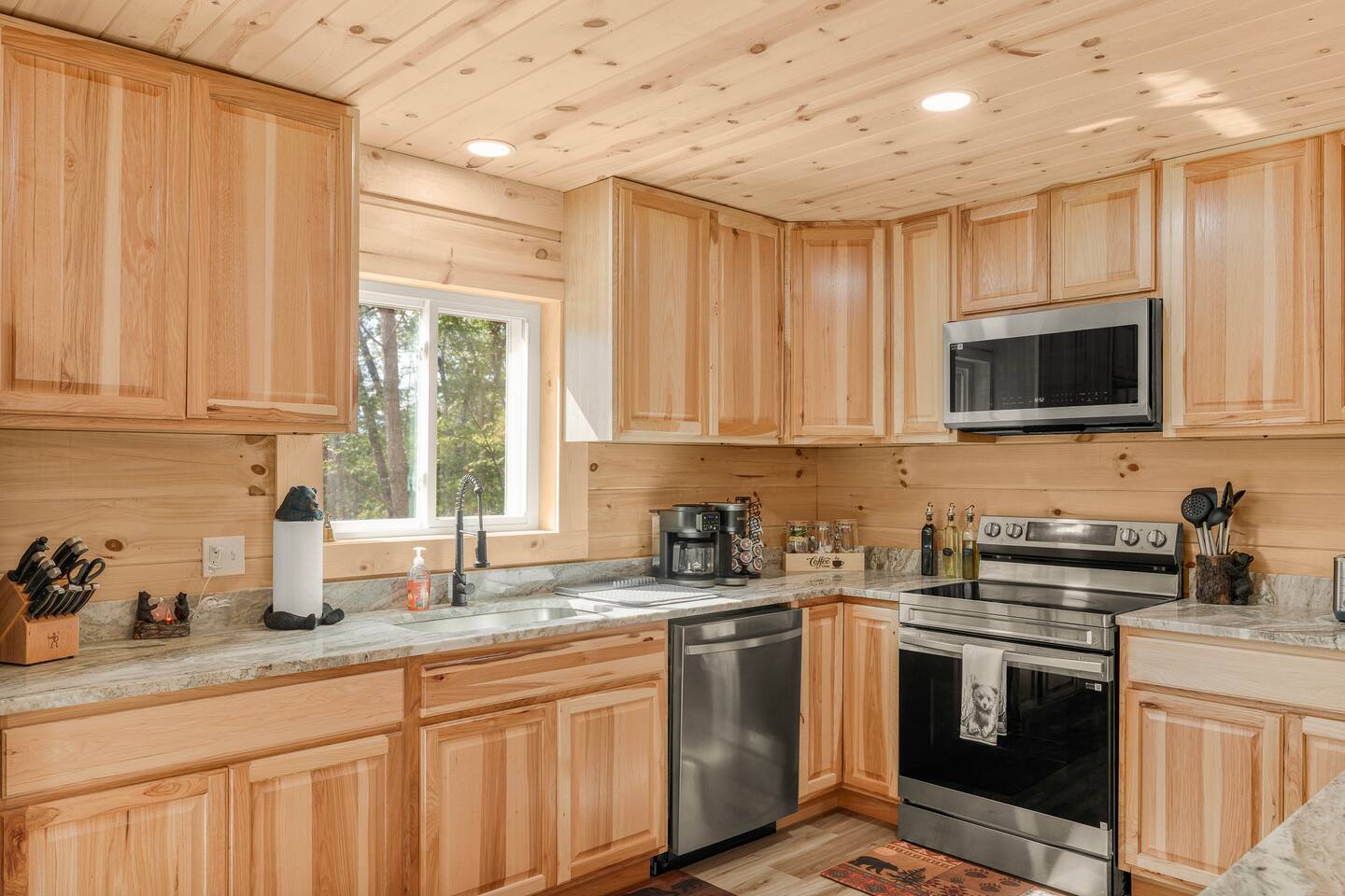 Shenandoah River Access: River access available with a pass (provided) before entering the Shenandoah Gap (SGPOA) subdivision. Bathroom Essentials: Shampoo, conditioner, body wash, hair dryer, cotton balls, cotton swabs, toothbrush, feminine products, and spare razors. Linens: Towels, washcloths, sheets, pillowcases, hot tub towels, and bathmats. Hot Tub: 8-person spa with 63 therapeutic stainless steel jets, captain's chair, tactile jetted massage dome, dual adjustable collar jets, lighted cup holders, pop-up fountains, and soft pillows. Outdoor Cooking: Weber gas grill. Entertainment: 65-inch and 55-inch smart TVs, wireless outdoor speakers (Bluetooth/Airplay compatible). Laundry: Washer/dryer access. Firepit: 30-inch smokeless firepit with wood provided. Outdoor Furniture: multiple seating areas that include lounge chairs and outdoor dining table. Kitchen: Coffee Makers: Keurig K-Duo Hot & Iced Single Serve & Carafe Coffee Maker, BLACK+DECKER One Touch Coffee Grinder. Cooking Appliances: Chefman XL Electric Griddle, BELLA Classic Rotating Belgian Waffle Maker, Instant Pot Duo 7-in-1 Electric Pressure Cooker, Chefman Electric Kettle, Ninja BL610 Professional Blender, CHEFMAN Multifunctional Digital Air Fryer+ Rotisserie, GE Stainless Steel 4-Slice Toaster. Cookware: Deep glass baking dish set, Crock-Pot 7 Quart Slow Cooker, T-fal Ultimate Hard Anodized Nonstick Cookware Set (17 pieces), mixing bowls, and more.BBQ Tools: ROMANTICIST 30-piece BBQ Grill Tool Set.